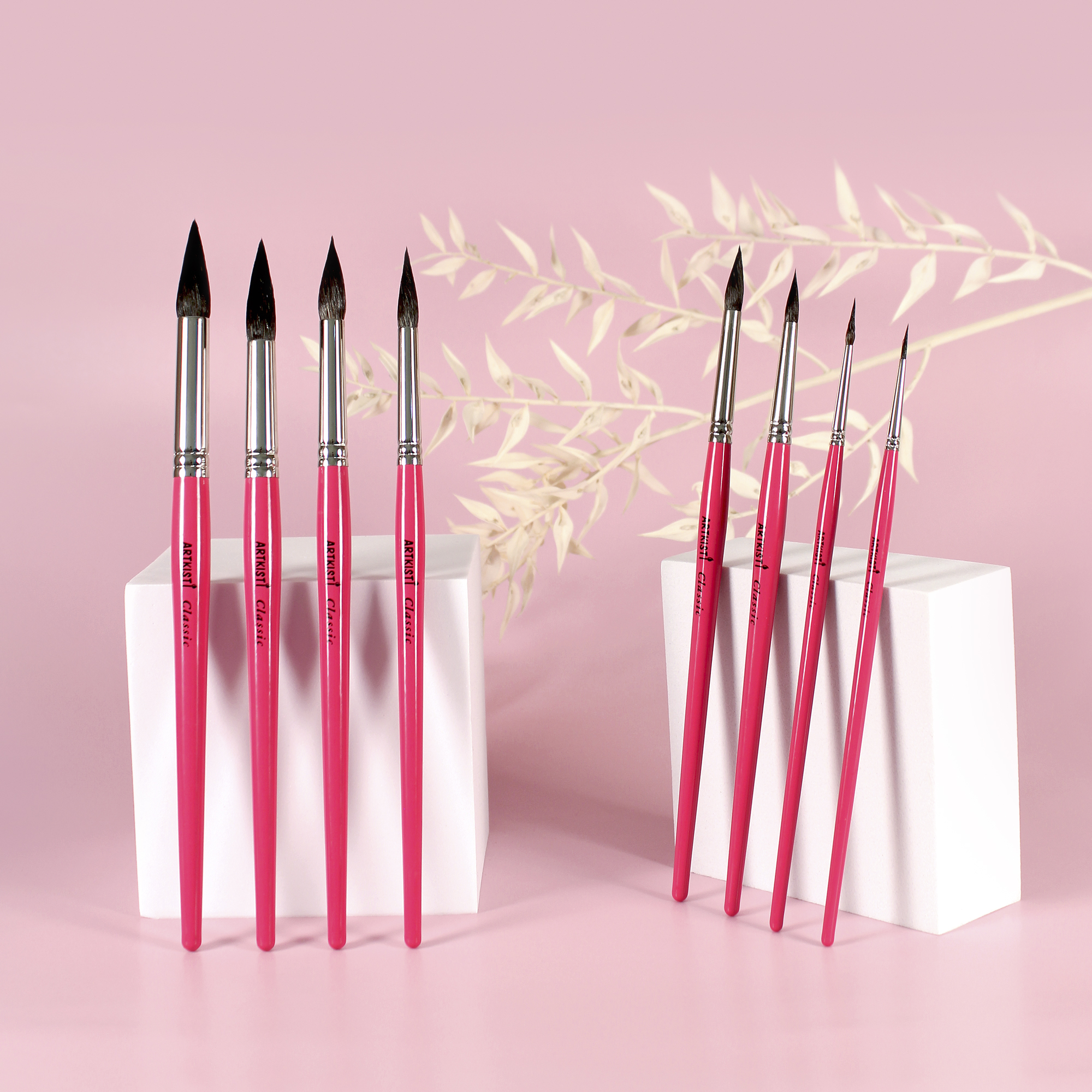 В коллекцию вошли круглые кисти с традиционной длиной мазка, номера 1-10. Диаметр мазка соответствует номеру кисти.