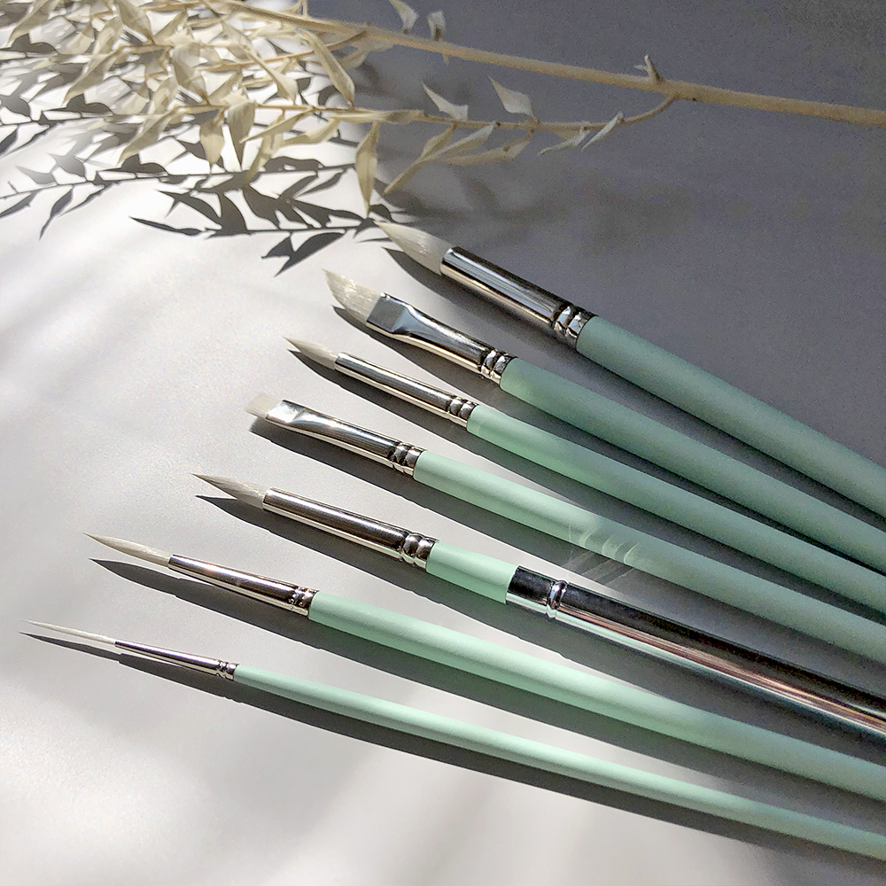 • Кисть даггер №10 – многофункциональная кисть, которой возможно прописывать мелкие детали острой вершинкой, большие площади – рабочей поверхностью кисти, также данная форма кисти хорошо зарекомендовала себя при работе в технике «сухой штрих» и для хаотичных мазков.