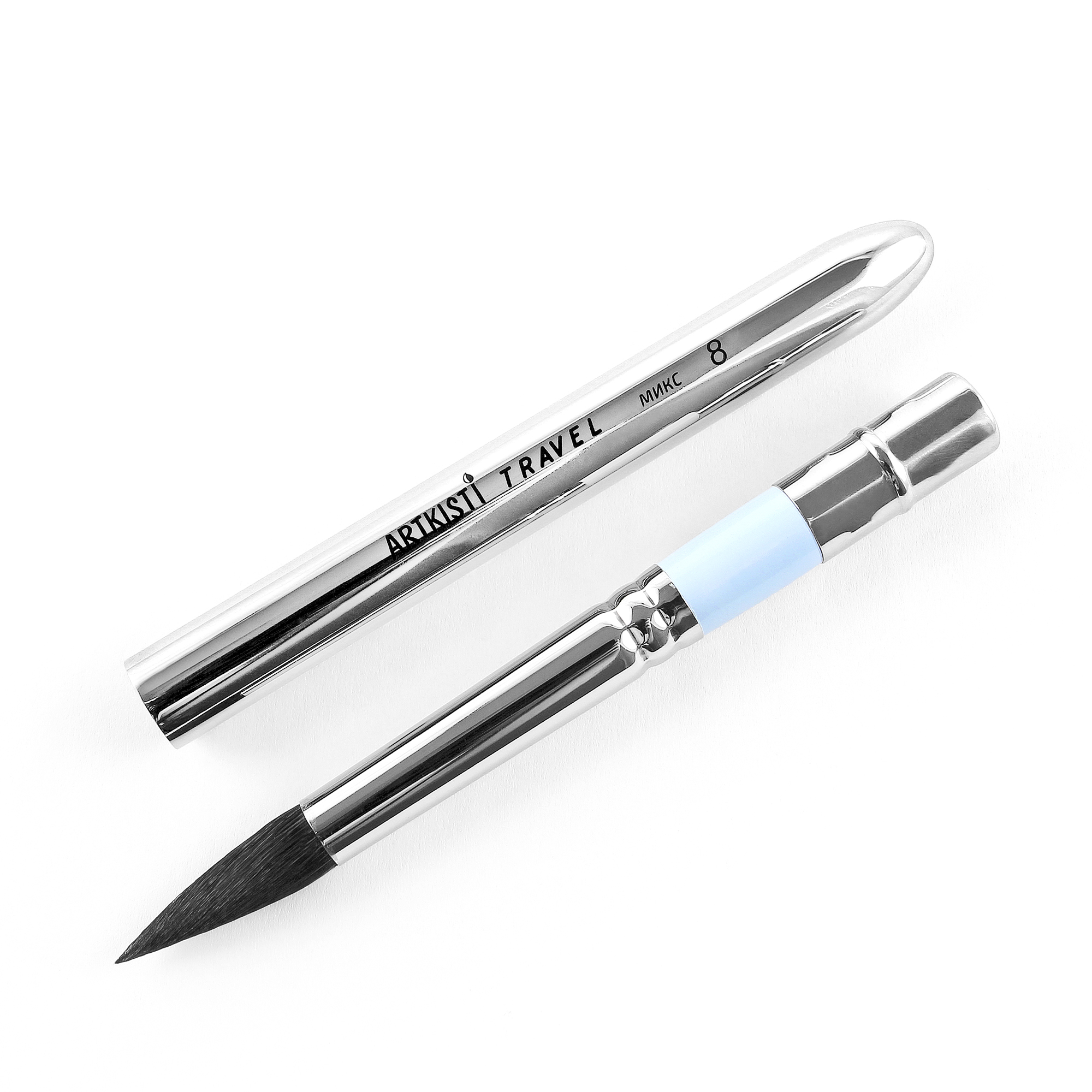 Складная кисть, круглая №8, волос микс: сибирский соболь и синтетика.