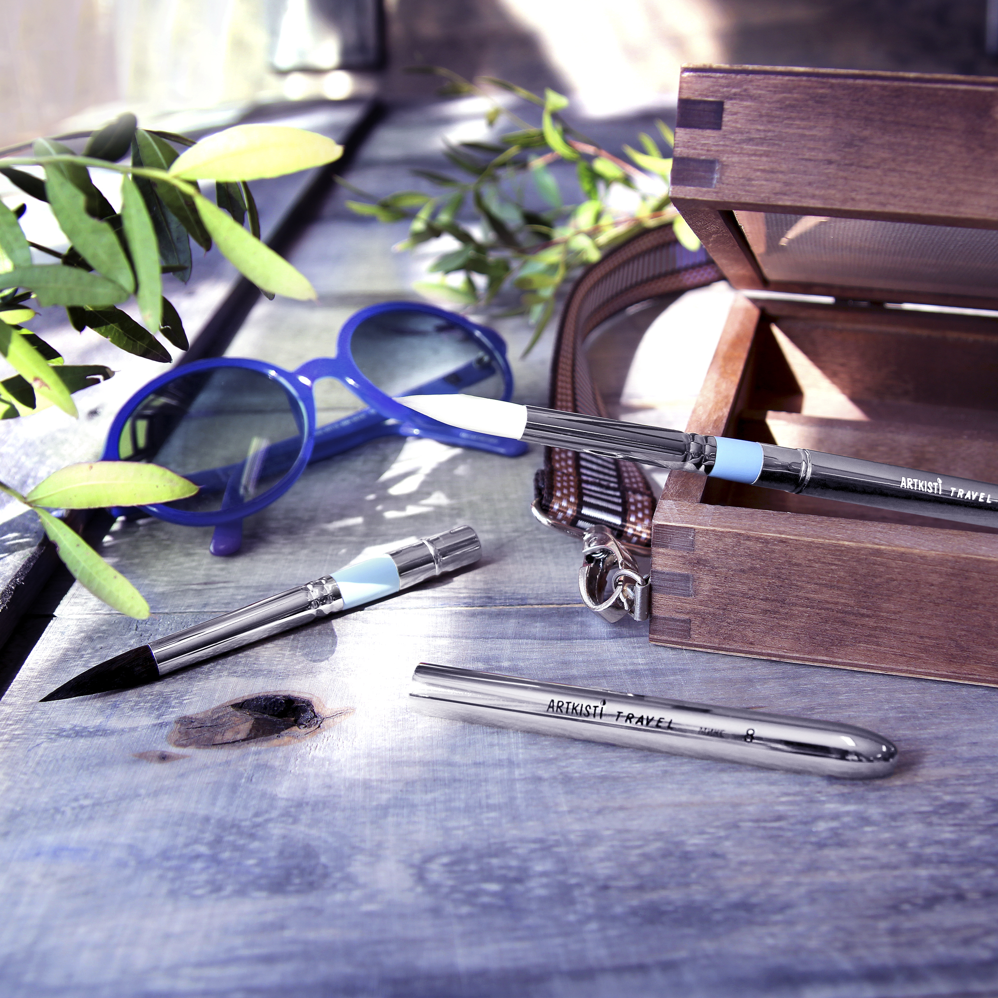 Особенностью данной серии является наличие футляра, который накручивается в качестве ручки кисти. Это делает кисти идеальными для работы на пленэрах и вне студии.